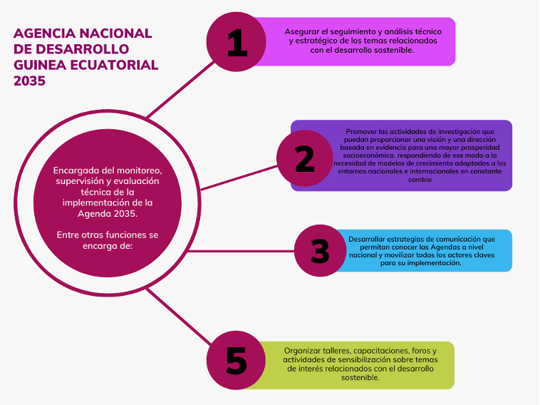Como muestra de su compromiso, El Gobierno de Guinea Ecuatorial, ha integrado la Agenda 2030 en su esquema de planificación, con el fin de crear un entorno favorable para alcanzar las metas que persiguen los ODS.